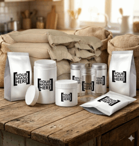 Yes. We provide private label solutions in various packaging formats. This includes PET jars, pouches (MET/POLY), glass jars, tins, and bulk HDPE bags. We can use your artwork or develop packaging designs based on your requirements. The Chef Co. is our in-house brand in India, which uses the same infrastructure.